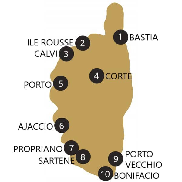 Some make an ideal base for exploring the island’s rugged heart, others are perfect for relaxing beach days, while several combine notable historic heritage with vibrant seaside life. Together, they give a balanced snapshot of Corsica, from the mountainous spine of the interior to the turquoise bays of the north and southeast.