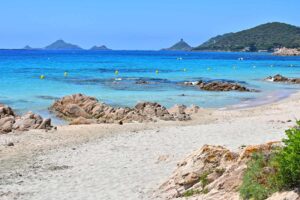 Plage Terre Sacrée, with its stunning views of Iles Sanguinaires and azure waters, is one of Ajaccio’s most beautiful beaches.