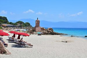 In the middle of Terre Sacrée Beach, an imposing monument honours the fallen Corsican soldiers.