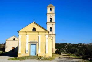 The Church of the Annunciation in Sant’Antonino is an imposing Romanesque building with a tall four-level bell tower.