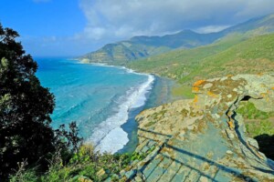 The pebbly Plage de Nonza nestled on the west coast of Cap Corse is renowned for its rugged beauty.