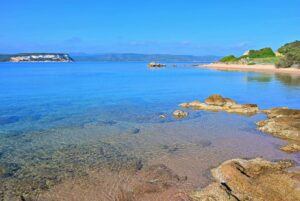 Families love Plage de Sant’Amanza for its calm, clear waters.