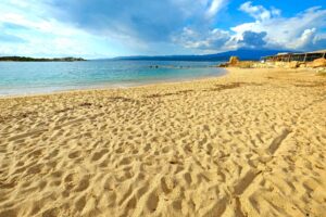 The vast golden sweep of Plage de Tonnara is a popular spot for families with young children.