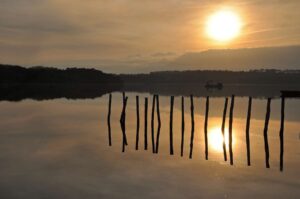 Urbinu’s tranquil lagoon offers stunning reflections of the sky and surrounding forests, perfect for quiet contemplation.