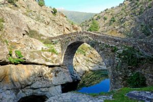 One of the most beautiful places for a cooling dip is the emerald-hued deep canyon under the Genoese Bridge in the village of Asco.