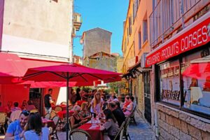Ajaccio’s restaurants serve not only traditional Corsican dishes but also typical seaside specialties with fresh fish and seafood present on the menu.