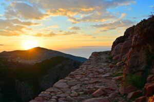 To visit the Calanches on foot, follow the scenic old mule trail.