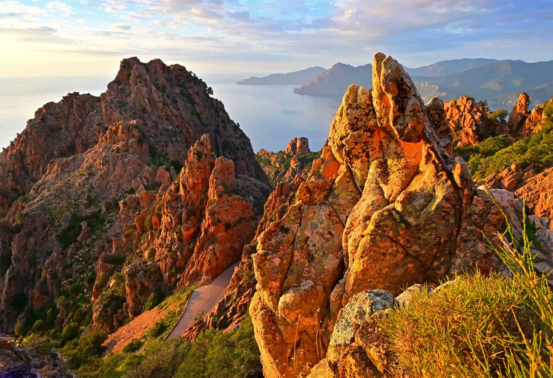 From the historic mule trail, you may view the scenic D81 road linking Piana with Porto.
