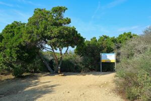 At the clearing with a centrally-positioned tree and an information panel, take the right path.