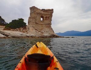 Tour de Mortella on Desert des Agriates can be reached on foot, by boat, or in a kayak from Saint Florent.