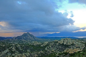 Monte Ghjenuva dominates the rocky terrain of Desert des Agriates.