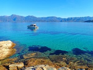 The Valdolese beach affords beautiful panoramic views across the Saint Florent bay.