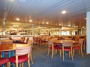 Corsica Ferries self-service restaurant offers a reasonably-priced selection of starters, main courses, and desserts.