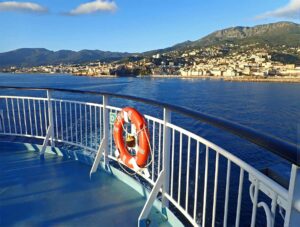 Ferry travel grants an opportunity to view Corsic’s scenic coastline from the sea.