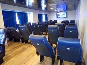 Onboard ferry amenities include reclining seats where you can comfortably relax or enjoy a nap.