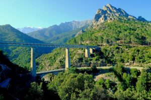 The train crosses Pont du Vecchio, the famous road bridge designed by Gustave Eiffel.
