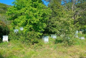 Beehives of Domaine Petricajola overlook the scenic Nebbio Valley in northern Corsica