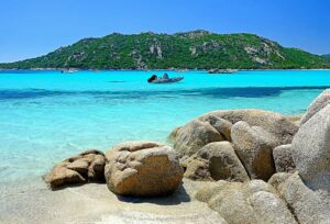 Santa Giulia beach stuns with its fairytale-like, exotic seascape comprising an aquamarine lagoon dominated by lush maquis-carpeted mountains.