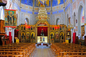 The Greek church of Cargese boasts a vividly decorated neoclassical interior.
