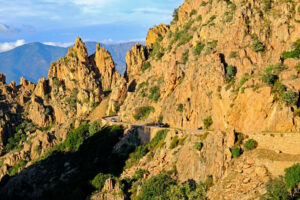 Calanches de Piana offer breathtaking scenery of red rocky formations descending into the sea.