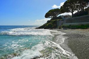 Marine de Pietranera’s scenic shoreline is dominated by fragrant Mediterranean pine trees.