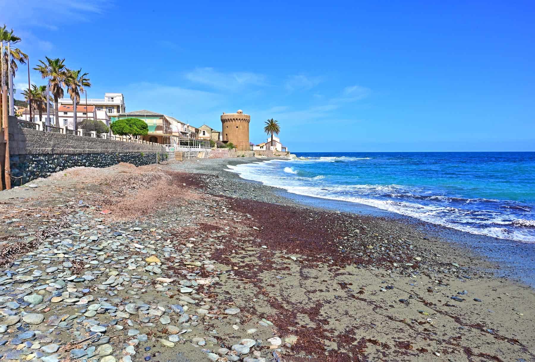 The palm tree-dominated beach of Miomo is easily accessible from Bastia’s centre.