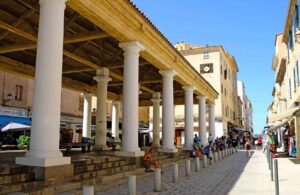 The town’s historic open food market supported by tall columns is a great place to shop for take-home gifts.