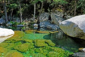 Restonica River seduces with innumerable emerald-hued natural pools perfect for swimming.